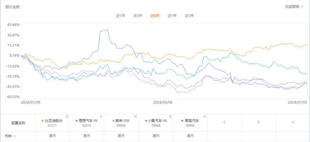 最终的结果是,2023年比亚迪的单车可变成本下降了1.8万,完全覆盖掉了单车价格的下滑。而高端和出口车型更高的毛利率,也进一步向上拉动了比亚迪的整体毛利率水平。在以价换量的大背景下,比亚迪凭借极致的成本控制和出海谋求新市场的组合拳,保证了自身的盈利空间,成为今年以来唯一一家股价保持正向增长的中国新能源车企。