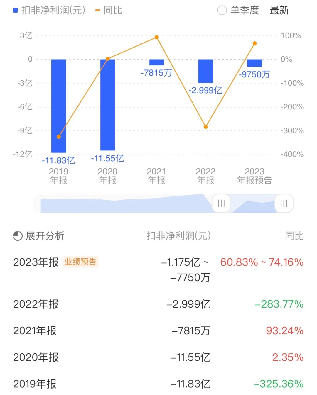高新兴是一家以车联网及智慧交通、公共安全为代表的物联网的厂商。遗憾的是,近年来在物联网市场表现低迷,与前景广阔的物联网市场形成鲜明对比。扣非后连续五年亏损。2019年、2020年、2021年、2022年扣非后净亏损分别为11.83亿元、11.55亿元、7815万元、2.999亿元。2023年扣非后预计亏损7750万- 1.175亿元。