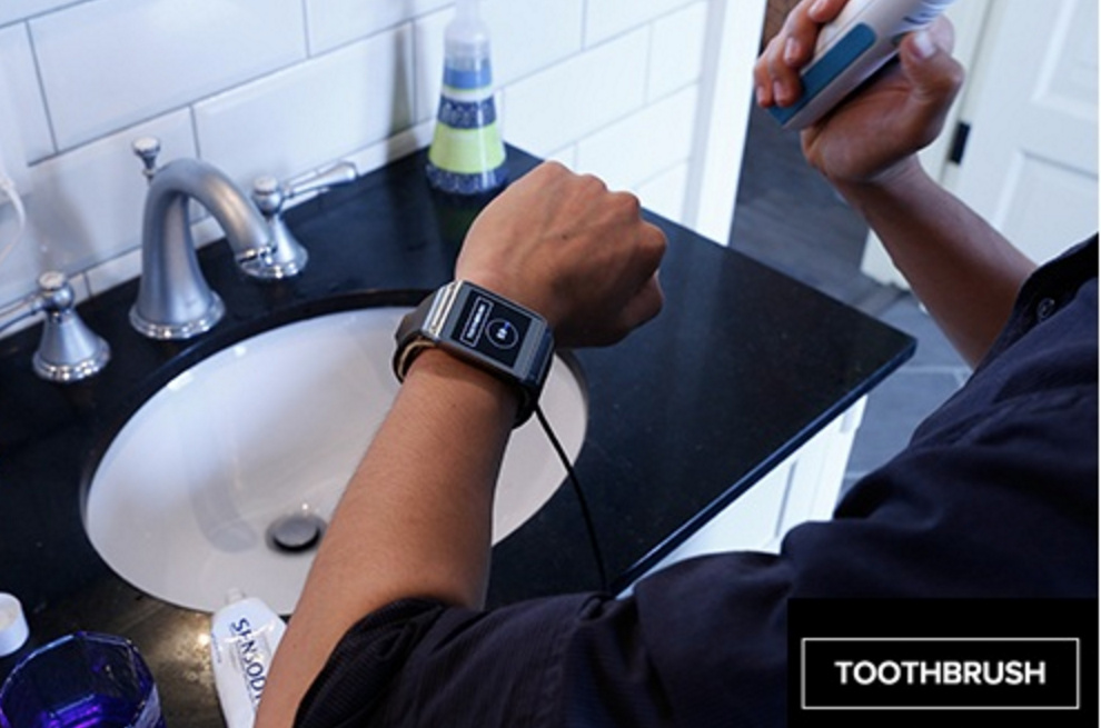 当你拿起牙刷准备刷牙的时候,这块智能手表能够识别到“拿到牙刷”这个信息,然后它会开始对你刷牙的时间进行计时。如果手表检测到你触碰了电热水壶准备在清晨烧一壶水,它会自动为你推送一些早间新闻。再或者是,它侦测到了你的手放在摩托车手把上,接下来它会立刻为你计算到达目的地所需时间。