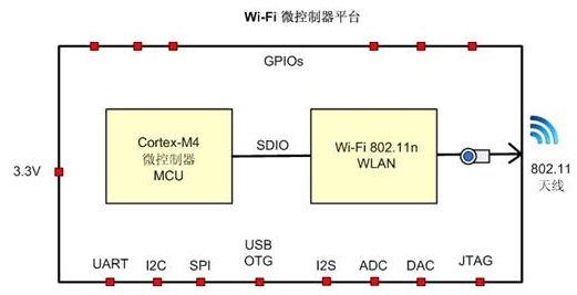 内置全功能微控制器MCU + WLAN的单芯片SoC;
