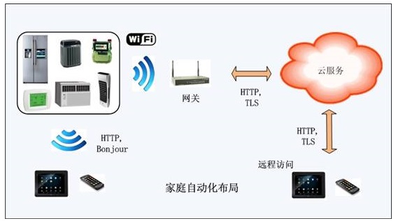 从上图可看出,家庭自动化系统将嵌入式微控制器技术、无线连接、接入网络融合为一体。Apps软件能够使用户发现家里的设备,予以设置,或者创建一个动作加以控制。