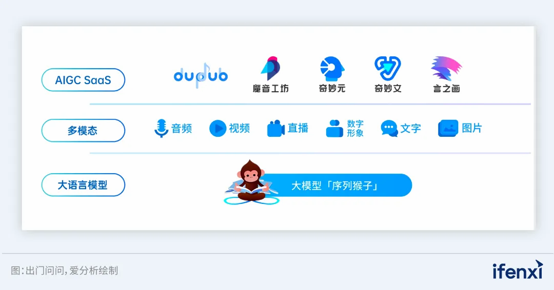 目前,出门问问主营的AI软件解决方案业务以通用大模型为主,旗下“序列猴子”大语言模型衍生有数字人、AI配音、AI交互式数字员工生成平台等功能应用。