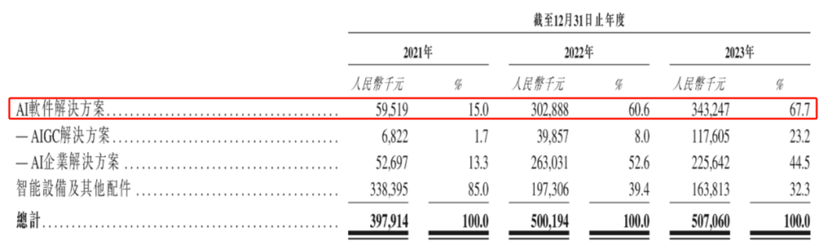 从营收构成来看,原本占据主导地位的智能设备及其他配件业务逐渐让出第一的宝座,AI软件解决方案业务借势成为重点板块,业务收入稳步上涨。