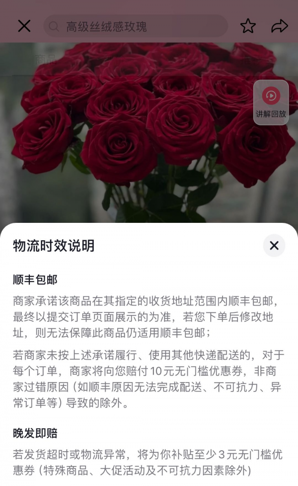 同时,抖音还联合平台优质鲜花商家,提供晚发即赔、运费险等保障;对于鲜花消费者来说,买花后提心吊胆,等待收货的日子,从此一去不复返了。