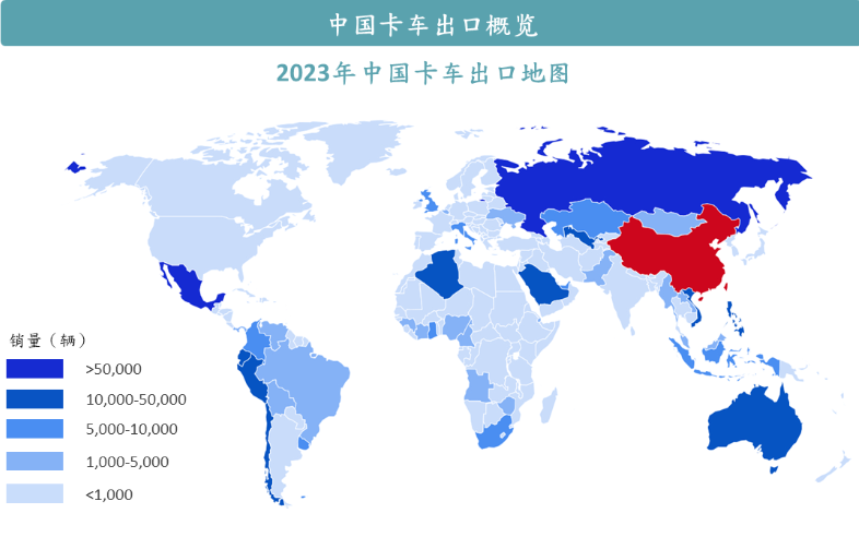 毫无疑问,苇渡科技选择了一条独特的出海路线。根据交银国际证券的研报,国内卡车出口重点以“一带一路”国家为主,欧美发达国家销量相对较低。