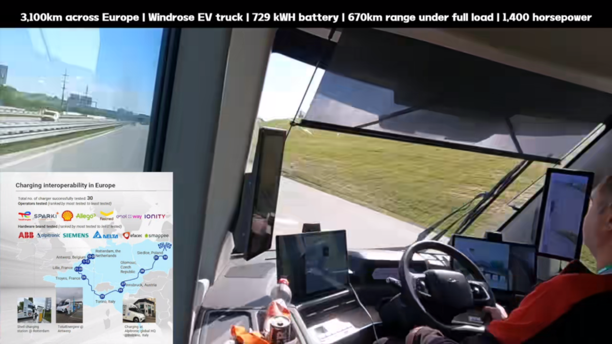 与此同时,从苇渡科技视频号内容来看,该公司也积极开展在欧美地区的长距离路测。5月,苇渡科技纯电重卡完成单程3,100公里横跨欧洲路测;6月,苇渡科技成功在美国完成单程2,800英里(4,500公里)横跨东西岸路测。