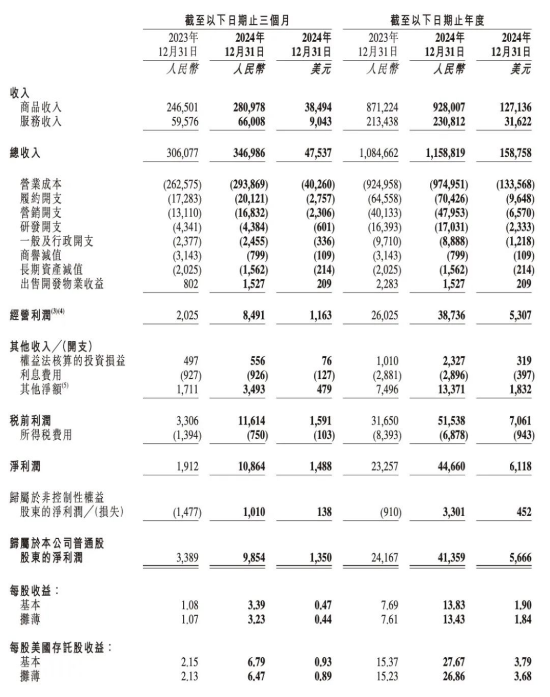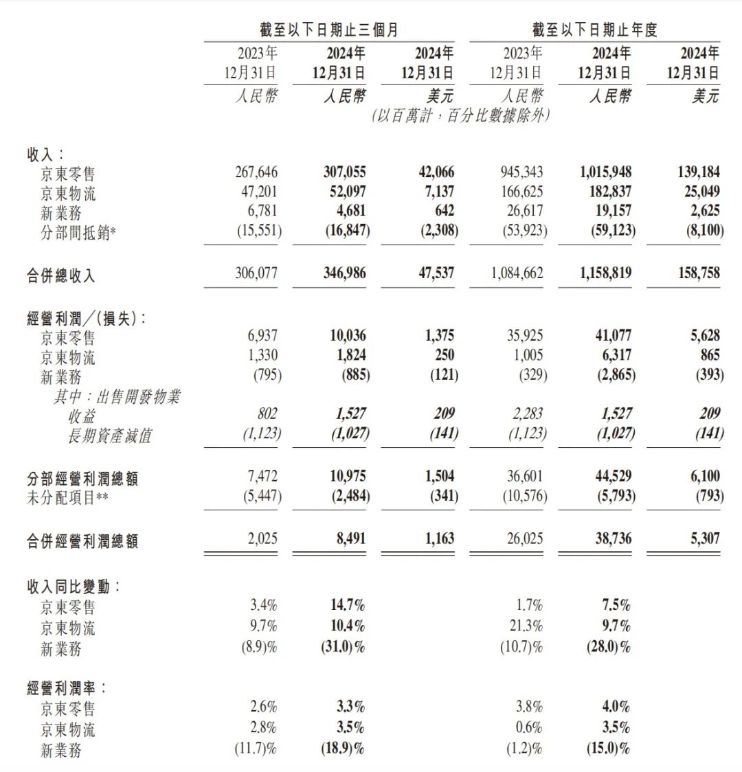 一方面,市场认可京东的业绩。京东零售业务在2024年实现收入1.02万亿元,同比增长7.5%,整体跑赢了我国社零增长(3.5%),以及电商的增长(7.2%)。