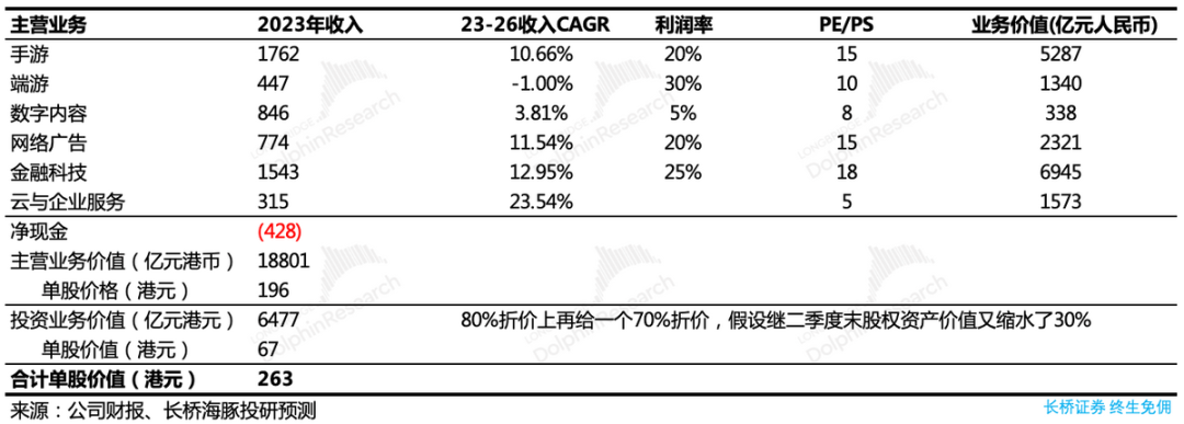 相比之前海豚君年初给的估值,主要下调了短中期的游戏收入增速,放缓广告修复速度,以及压缩企业云的长期空间。除此之外,我们也将无风险利率上调至3.5%来反应短中期的加息环境。
