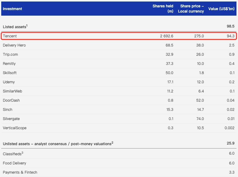 其中,由于非上市投资资产价值取决于分析师们给出的估值,往往高于对应资产的账面价值。因此这也就导致,无论是Naspers,还是Prosus,官网披露的“净资产”一般情况下要大于其报表上的资产减负债,且会随着分析师的预期变动而不断调整。