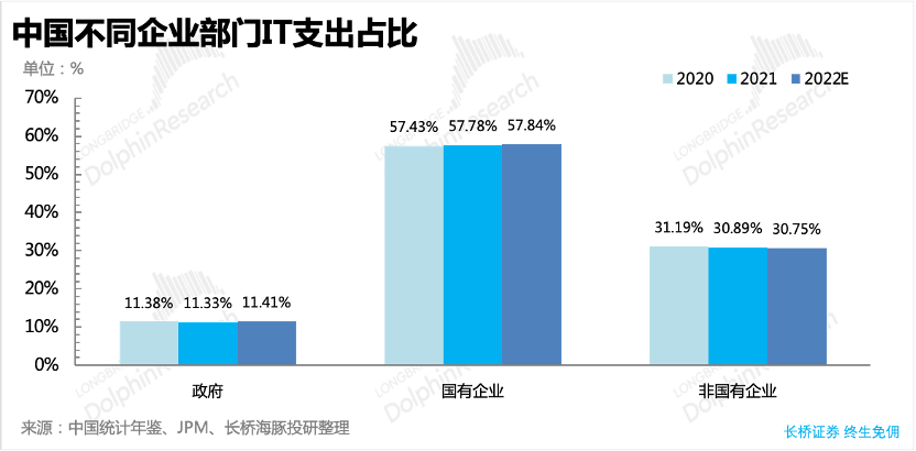 根据JPM估算,2021年来自政府、公用事业部门的IT相关支出占到国内IT总支出的70%(公有云支出包含在内),剩下的市场中,腾讯云相对有竞争优势的互联网企业客户,占比较小且目前公有云的渗透相对充分。未来中国公有云高速增长的驱动力将主要来自于传统企业向数字经济转型,但腾讯云的技术先发优势并不能帮助自己获得增长红利。