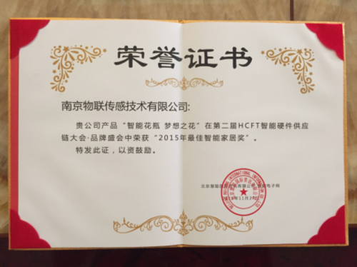 近日,领先的智能家居系统品牌厂商物联传感最新智能家居力作“梦想之花”在第二届HCFT智能硬件供应链大会上获得“2015年最佳智能家居奖”。这是今年梦想之花继获得“2015消费电子行业Leader创新奖趋势设计大奖”之后获得的又一殊荣。