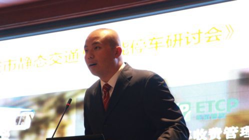 ETCP高级市场高级营销经理孙竞轩向与会听众介绍停车场解决方案