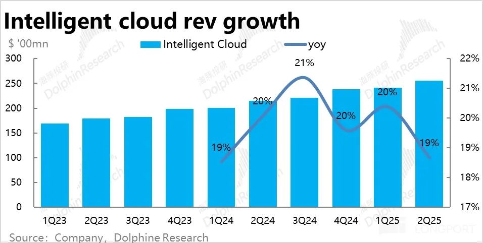 整体上由于 Azure 业务增长的放缓且稍不及市场预期,整个智慧云板块本季收入$255 亿,稍低于预期的$259 亿。同比增长 19%,环比放缓 1pct。
