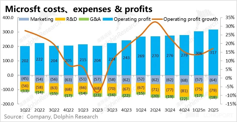 增长角度,是即期表现不算好,领先指标则相当强劲的喜忧参半图景。盈利角度,微软本次的表现还算不错。