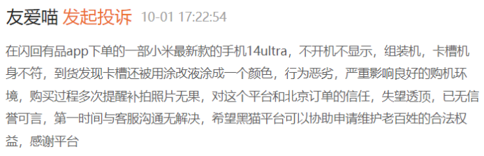 同样,向闪回收出售二手手机的消费者的投诉更不在少数。