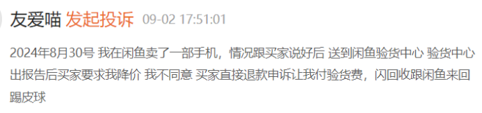 还有消费者表示平台会较长时间留置待验货的手机,其表示“由闲鱼平台客户工作失误,导致验机费判定失职,本该由买家承担的判定给我了,因为买家已经明确说过他承担验机费,验机费是闲鱼客服失职造成的,不该由我承担,闪回收一直压着我的手机,我手机的折旧费应由闪回收承担闪回收,客服态度恶劣,不给解决问题。”