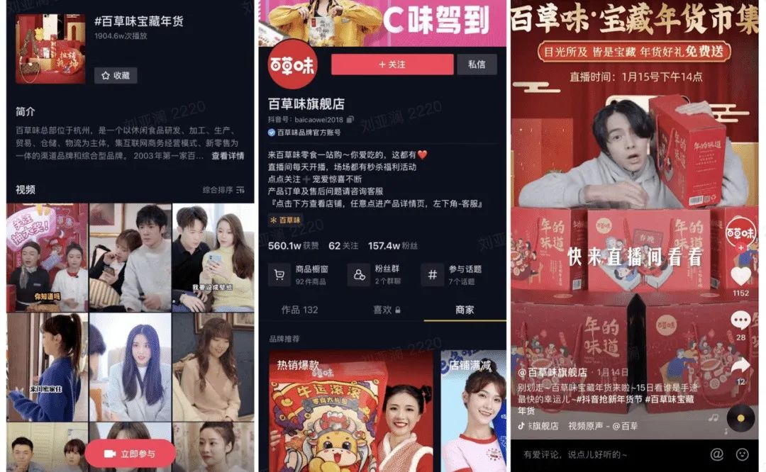 如今,抖音和快手已经成为了阿里之外,直播电商市场的新巨头。从市场成交额上看,阿里巴巴2021财年三季度财报信息显示,截至2020年12月31日,2020年淘宝直播带来的GMV超过人民币4000亿元,而从快手公开信息和海豚社数据来看,2020年,快手GMV达3812亿元,抖音GMV超5000亿元。