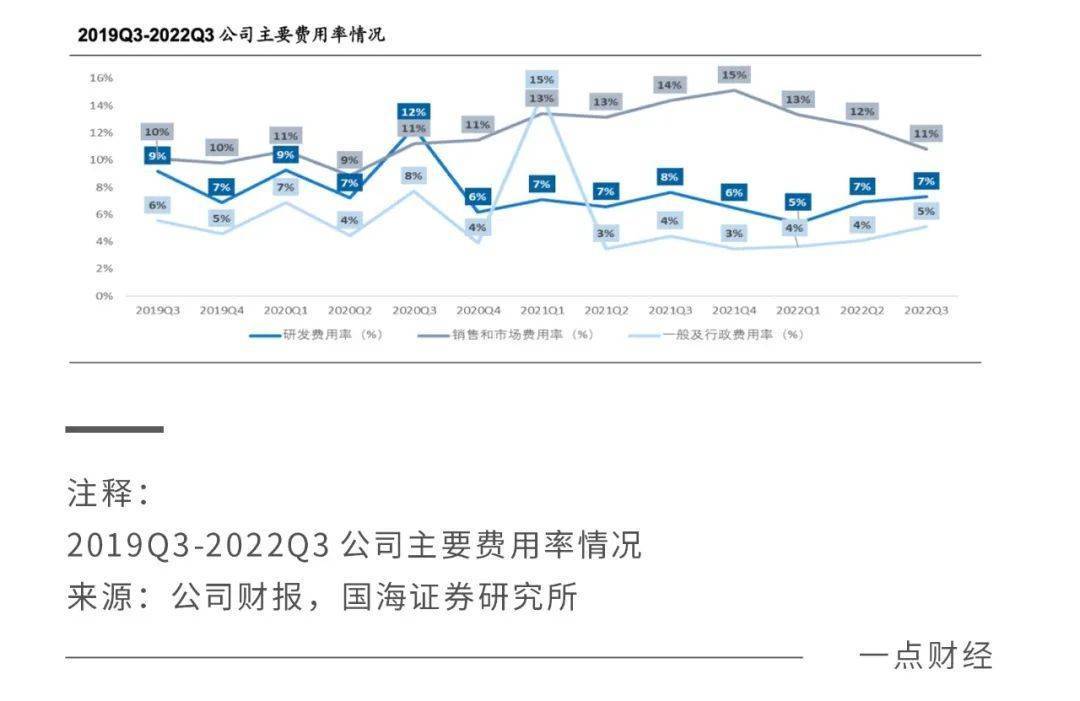 近些年其销售费用率的提升,与其他电商平台的竞争、自身新业务的推广有关,比如2018财年为应对其他电商平台在下沉市场的竞争而提高了销售费用率至11%,2022财年甚至达到了14%。