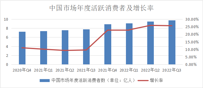 2021年,阿里巴巴生态体系全球年度活跃消费者(AAC)达到约12.80亿,单季增加约4,300万;其中9.79亿消费者来自中国市场,保持着25.67%的同比增长。