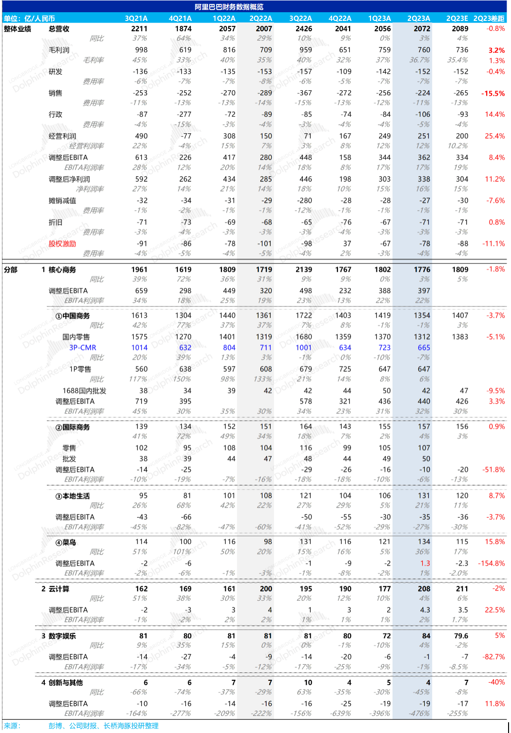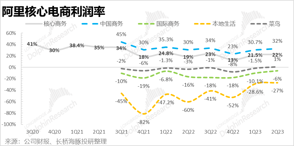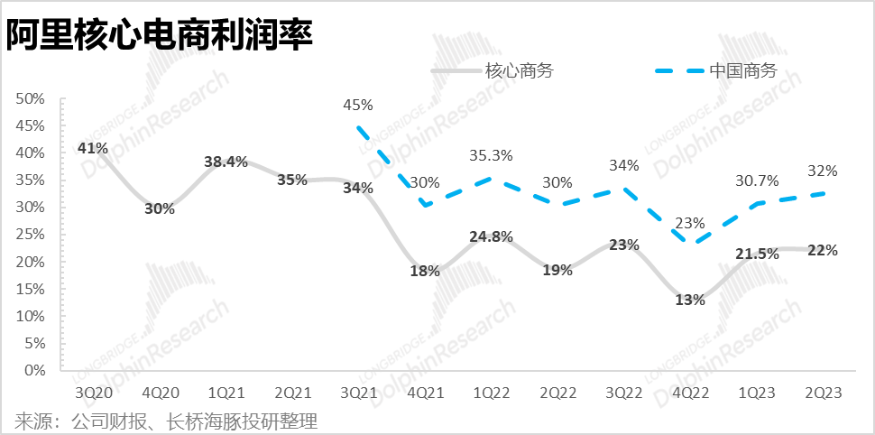 由于国内平台电商盈利较高,它所在的中国商务(还包括了自营电商的新零售业务以及批发电商1688.com),在各种降本增效,尤其是降低补贴、狠减销售费用之后,利润释放却非常超市场预期。