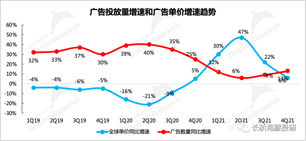 四季度广告单价同比增长6%,投放总量增长13%。量的驱动影响开始大于价格。