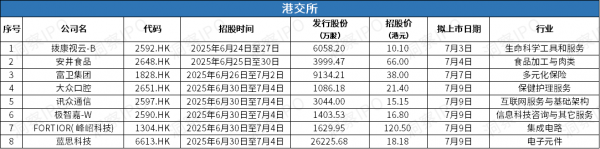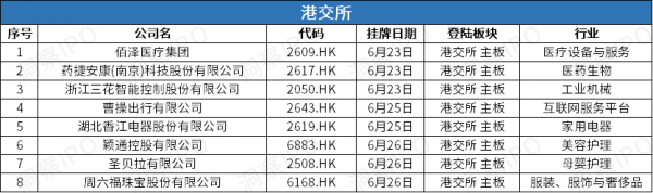 6月23日-6月29日,港交所有8家新股招股。