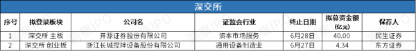 6月22日-6月29日,上交所无公司终止上市审核;深交所主板有1家终止上市审核。