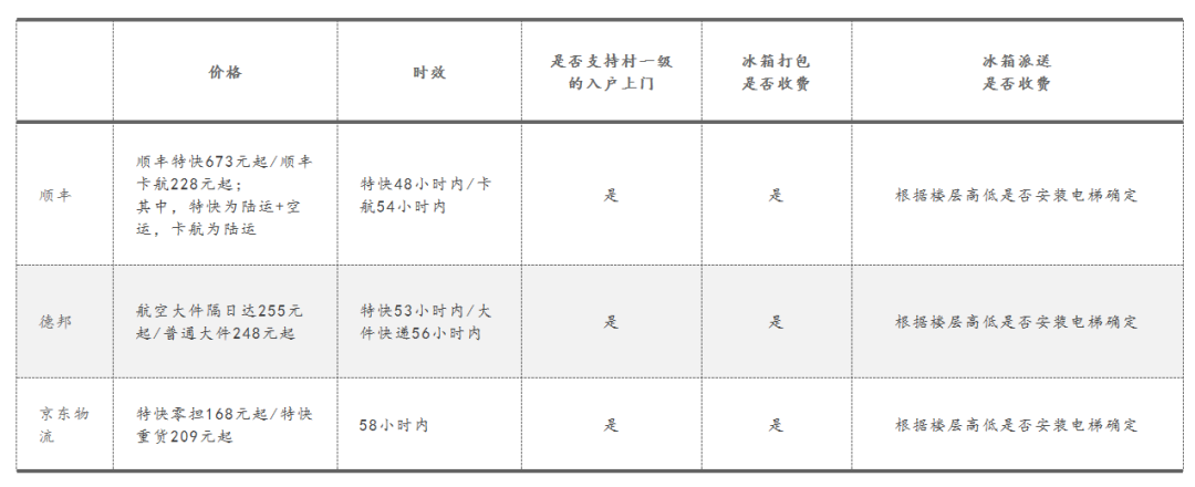 比如我们从安徽省界首市邮寄一台重量在60KG的冰箱到河北省邯郸市丛台区,结合几家平台小程序和官方客服给到的答复来看,顺丰价高但速度快,京东性价比更高,德邦在时效和价格上都居中。