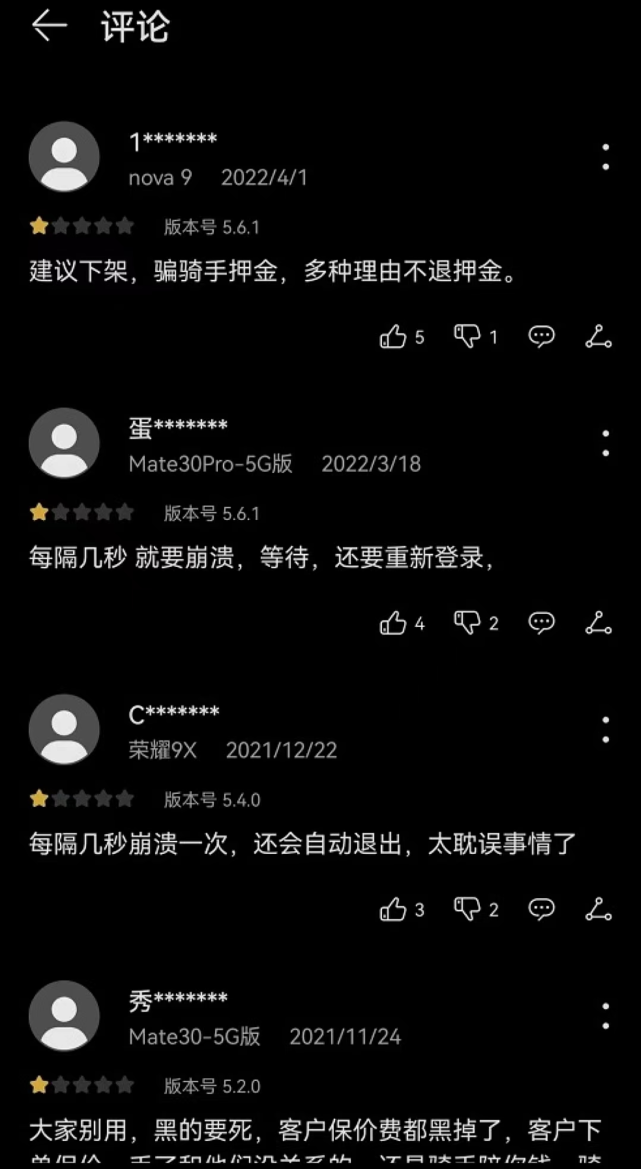 除了黑猫投诉平台之外,顺丰同城APP在华为应用市场的口碑也有待扭转。《港湾商业观察》发现,顺丰同城在华为应用市场的评分仅有2.1分,就连仅有的8条评论都全是差评。