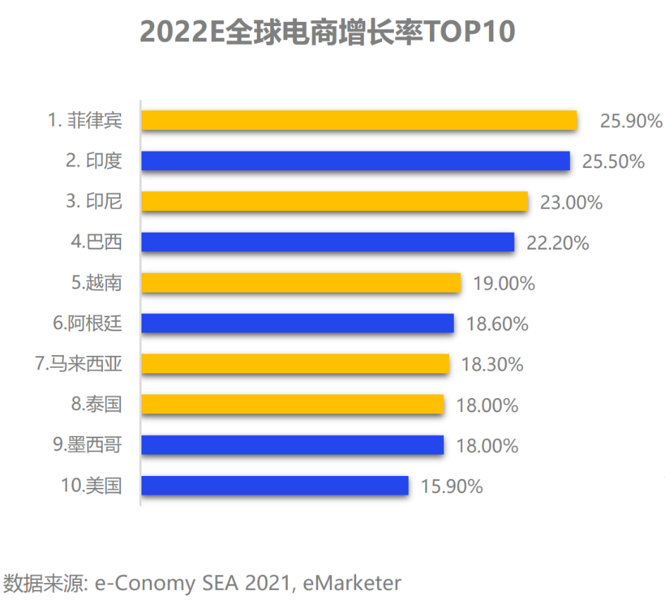 图:2022E全球电商增长率,来源:e-Conomy,亿邦智库
