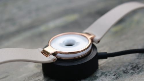 那究竟怎么充电呢?和Apple Watch、Moto360一样,华米Amazfit月霜也采用了无线充电的方式。通过随机附赠的黑色底座,就可以对手环进行充电。通过实际体验,仅需约一个半小时的时间,Amazfit月霜的电量即可完全充满。别看Amazfit月霜的个头不大,待机时间却异常凶猛。一次充电,Amazfit月霜可持续运行10天左右,所以完全不用担心电量的问题。