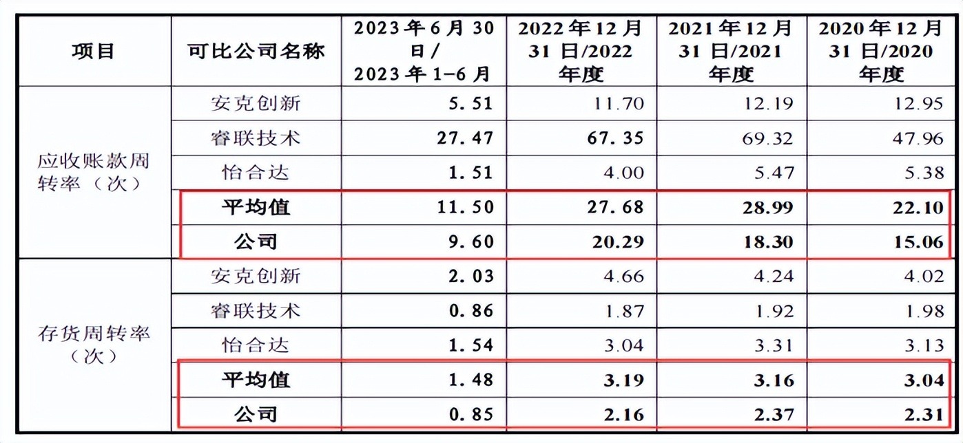 2020年-2023年1-6月,公司资产减值损失分别为773.06万元、1,485.47万元、102.43万元和336.33万元,主要为存货跌价损失。报告期内,存货周转率分别为2.31次、2.37次、2.16次和0.85次,低于可比同行安克创新、睿联技术和怡合达的均值3.04次、3.16次、3.19次和1.48次。