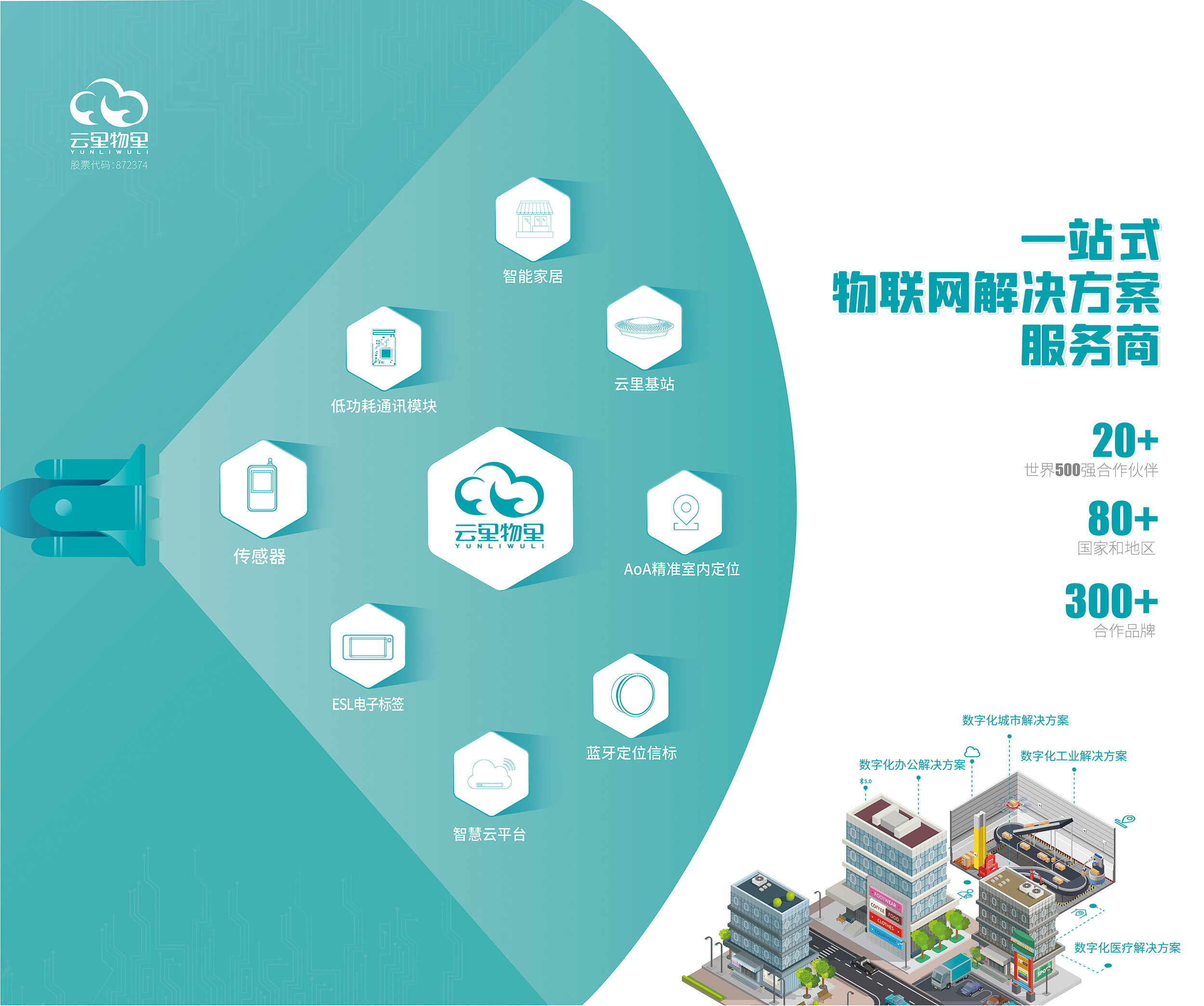 作为一站式物联网解决方案服务商,云里物里的产品应用涉及物联网产业链的感知层、网络层和应用层三个层次。在感知层,云里物里有自主研发的ESL电子标签、低功耗通讯模块、蓝牙信标、AoA室内精准定位、云里基站、传感器、智能家居等等;在网络层,云里物里有自主研发的系统控制平台:DOMORE智慧云平台;而在应用层,云里物里的数字化解决方案已经在办公、工业、仓储、医疗、零售等行业应用,推动这些传统行业向信息化、数字化转型,以此行业为延伸,通过打通行业数字化运营的“脉搏”,云里物里数字化解决方案已经在数字化城市的建设中贡献力量。此外,针对不同的行业应用场景,云里物里能提供个性化、精准化的解决方案,为物联网时代下的更多合作留下广阔的想象空间。