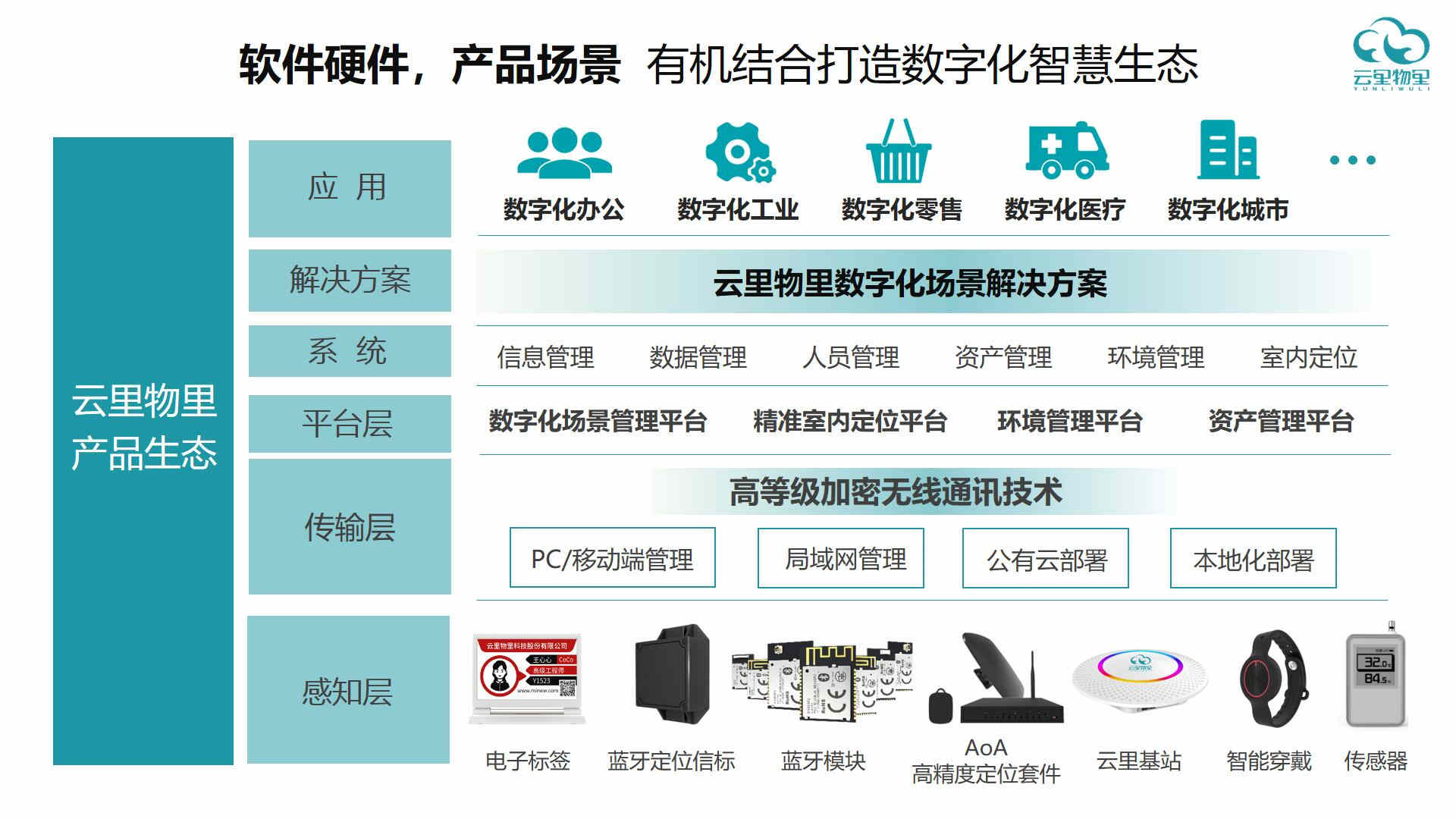 而云里物里正是顺应国家政策、行业趋势,充分利用公司在物联网行业十余年积累的经验,从产品到技术、从硬件到软件,打造整体化的场景数字化解决方案,推动传统行业向数字化转型,实现传统企业降本增效。