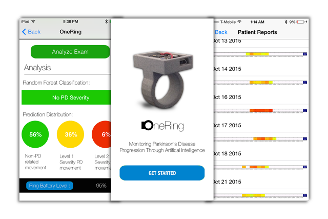 2014年,美国加州库比蒂诺高中的高一学生Utkarsh Tandon为其科学展项目开发了一个机器学习模型来收集、分析帕金森患者的数据。他赢了一等奖,获得加州大学洛杉矶分校大脑研究所的奖金。一年后,变成高二学生的Tandon将其科学实验变成适销产品。OneRing现在Kickstarter众筹,是一款监测帕金森患者颤抖情况的可穿戴设备,它能把数据发送到iOS App,数据会以清晰易懂的报告形式显示出来。
