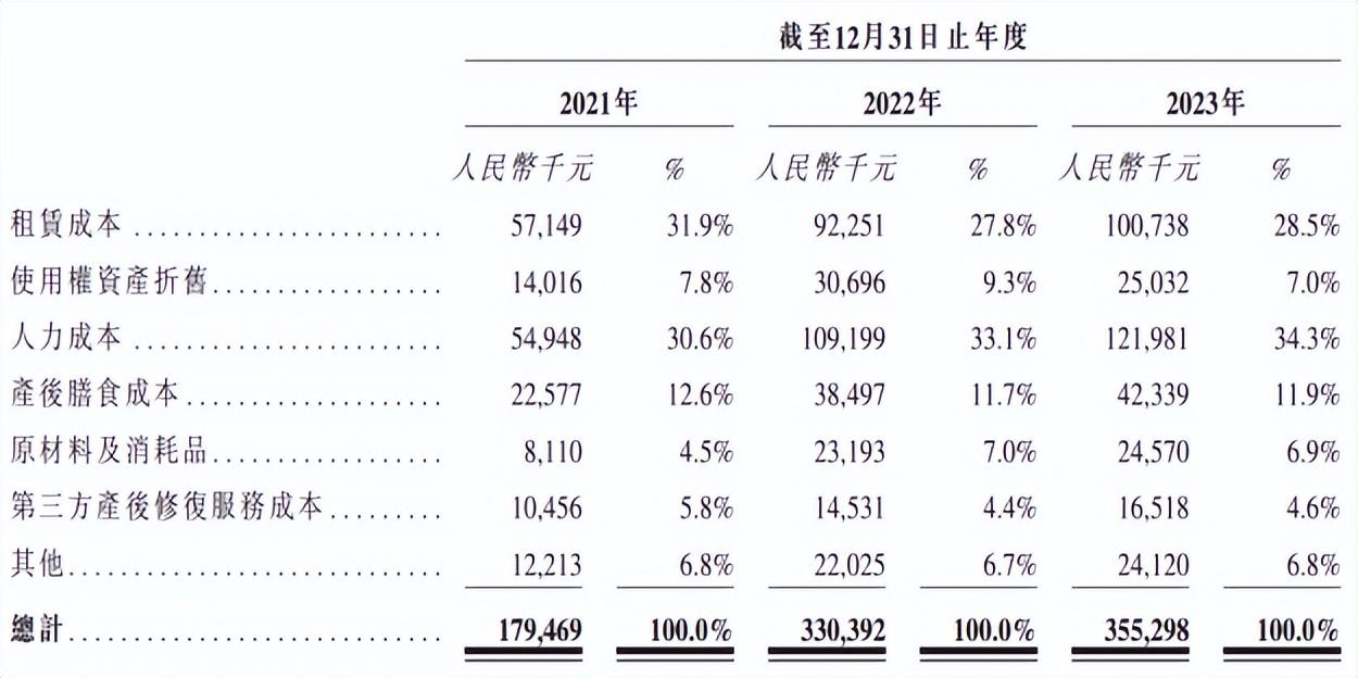 与此同时,圣贝拉需负担合作方向月子中心提供的餐饮、客房服务及其他日常服务。截至同期,该公司的产后膳食成本分别约为2257.7万元、3849.7万元和4233.9万元,分别占销售成本的12.6%、11.7%和11.9%。