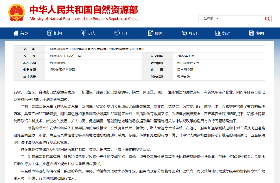 前段时间,自然资源部下发《关于促进智能网联汽车发展维护测绘地理信息安全的通知》,明确规定,高精地图测绘制作,只能由具备导航电子地图制作甲级资质的单位进行。