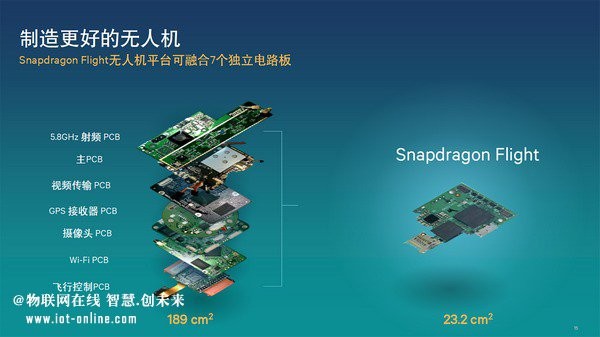 稍早前,高通推出面向消费级无人机和机器人应用的Snapdragon Flight参考板。目前,无人机由多个组件供应商提供独立的拍摄、导航和通信解决方案,增加了消费级无人机的成本和体积。Snapdragon Flight将定义移动行业的技术整合到单一参考板上,从而设计出更轻便、更小型、易于使用、经济实用、持久续航的无人机。
