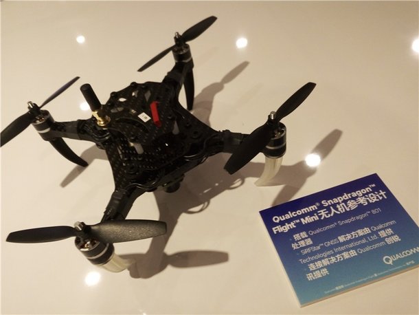 还有一款是Mini无人机,采用高通骁龙Flight平台,包含着一系列的高通传输技术、通讯技术、视频技术,把7个独立的电路板融为一体,将体积缩减到23平方厘米,大大缩小无人机的尺寸。