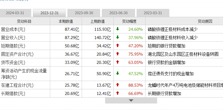 当时为例,更好的抓行业机会,龙蟠科技还持续扩产、建新产能,也因此公司资产负债率高增。财报显示,2023年其短期+长期贷款相比上一年增加了46.83亿元,增长了超一倍。截至目前,其资产负债率高增至76.49%,其成本高。