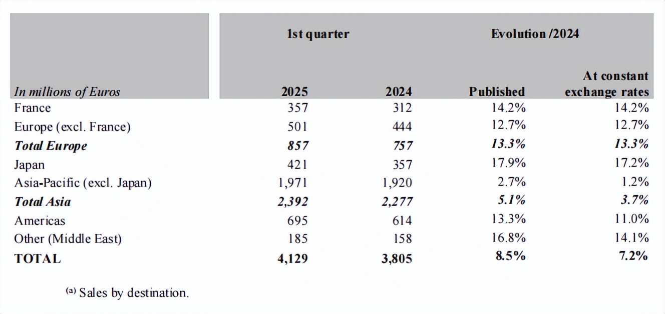 其中,亚太地区逆势增长,按固定汇率计算增长6%至3.81亿欧元,成为集团第一大市场;而中国与日本市场表现积极,成为最大市场的中坚力量。