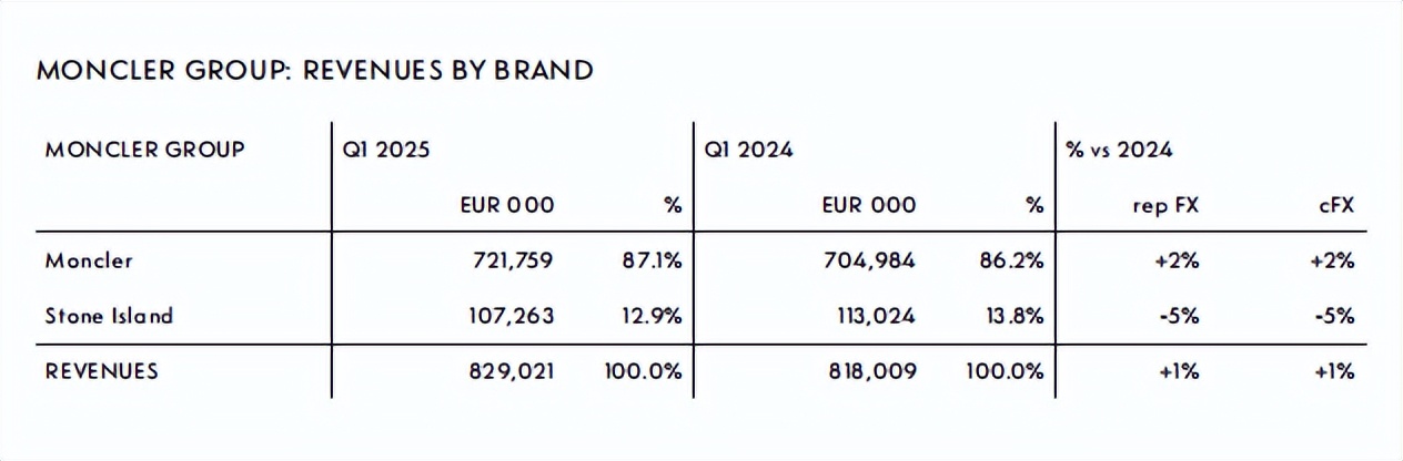 2025年第一季度,Moncler Group业绩超出市场预期,收入同比增长1%至8.29亿欧元。财报指出,期内增长主要受亚洲市场强劲需求及DTC(直接面向消费者)渠道扩张推动。