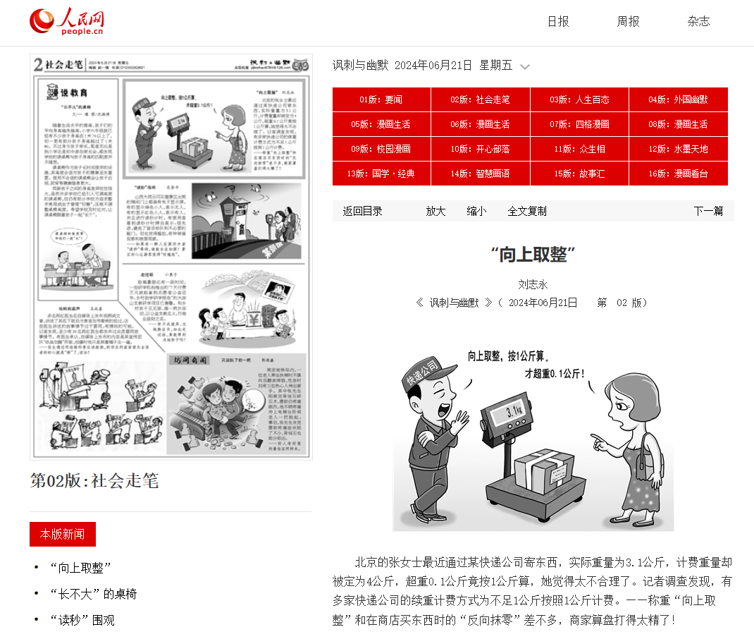 此外,2024年,快递企业“向上取整”的计费乱象就被媒体推至舆论聚光灯下。彼时,北京市朝阳区消费者张女士称,她最近通过某快递公司寄东西时遭遇快递续重“向上取整”的情况,实际重量3.1公斤,计费重量4公斤。