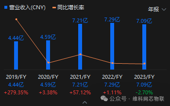 财报数据显示,2019年至2023年,寒武纪的营收分别为4.44亿、4.59亿、7.21亿、7.29亿以及7.09亿,营收增长受限,净利润更是连年都在亏损。