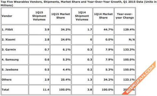 未经允许不得转载:物联网的那些事 - Totiot » 2015年一季度全球可穿戴设备排名:小米手环销量第二