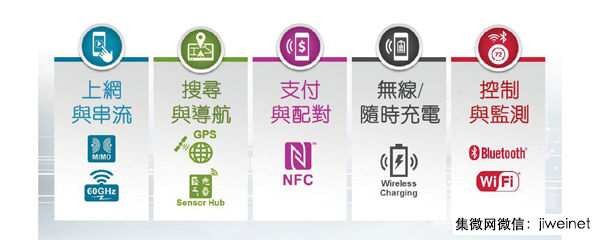 近距离通讯(NFC)技术能让两台装置藉由触碰方式进行配对或分享资料。这个技术不仅对行动支付的发展影响甚钜,并在其他消费性应用迅速获得青睐,因为它能搭配IoT技术,提供更个人化的体验,特别是在家庭自动化与连网汽车的应用上。
