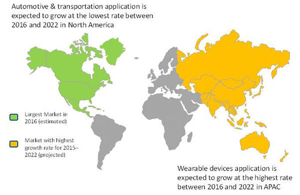 在 2016-2020年之间,随着全球采纳可穿戴设备日益普及,可穿戴设备应用预计将占据最大的市场,并主导整合IoT芯片市场。物联网日益普及以及在消费 市场采用越来越多的智慧手表与活动追踪器,为IoT制造商带来巨大的机会。随着可穿戴设备市场成长,对于连接芯片与微控制器(MCU)的需求预计将获得更 大的动能。