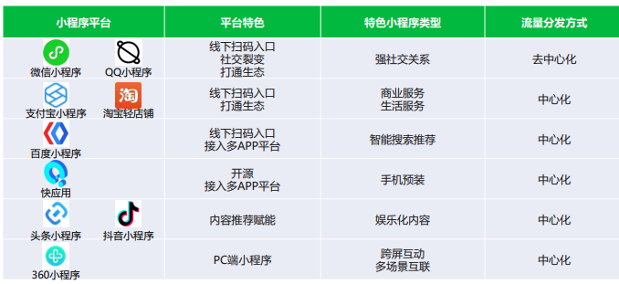 图 主流小程序平台特点