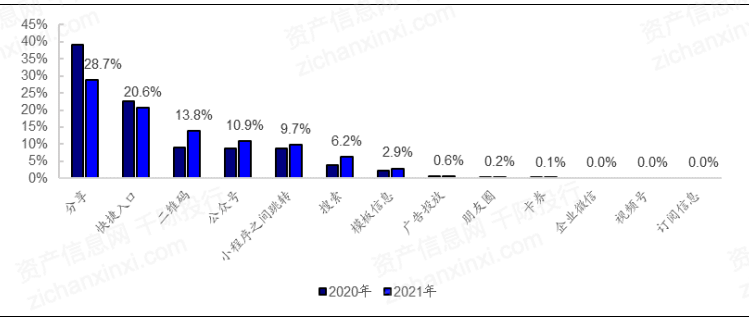 图 2021年小程序活跃用户入口分布(%)