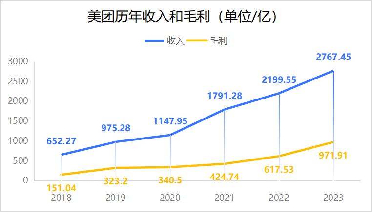 3月22日,美团发布2023年第四季度及全年财报。财报显示,2023年Q4季度美团收入736.95亿元,毛利249.93亿元;全年收入2767.45亿元,毛利971.91亿元。